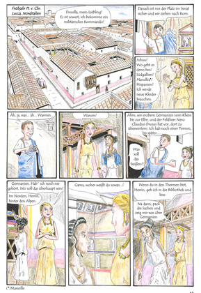 Unsere Geschichte spielt im Jahre 11 vor Christus. Der Römische Feldherr Nero Claudius Drusus befindet sich auf einem Feldzug durch Germanien. Hierbei lässt er auch ein strategisch günstig gelegenes Lager am Südtor in Bergkamen-Oberaden errichten. Unterstützt wird er dabei von seinem treuen Tribun Gaius Iunius Mellius.